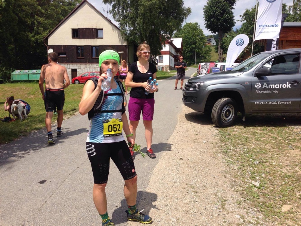 Vzhledem k tomu, že za občerstvovačkou začíná asi nejhustší seběh, co jsem kdy zažil, tak pár kroků před občerstvením zkouším nohu. Sice bolí, ale všechny kosti vypadaj, že jsou na svým místě. Piju vodu, tlačím meloun a vysvětluju noze, že šlápla na klacek.