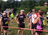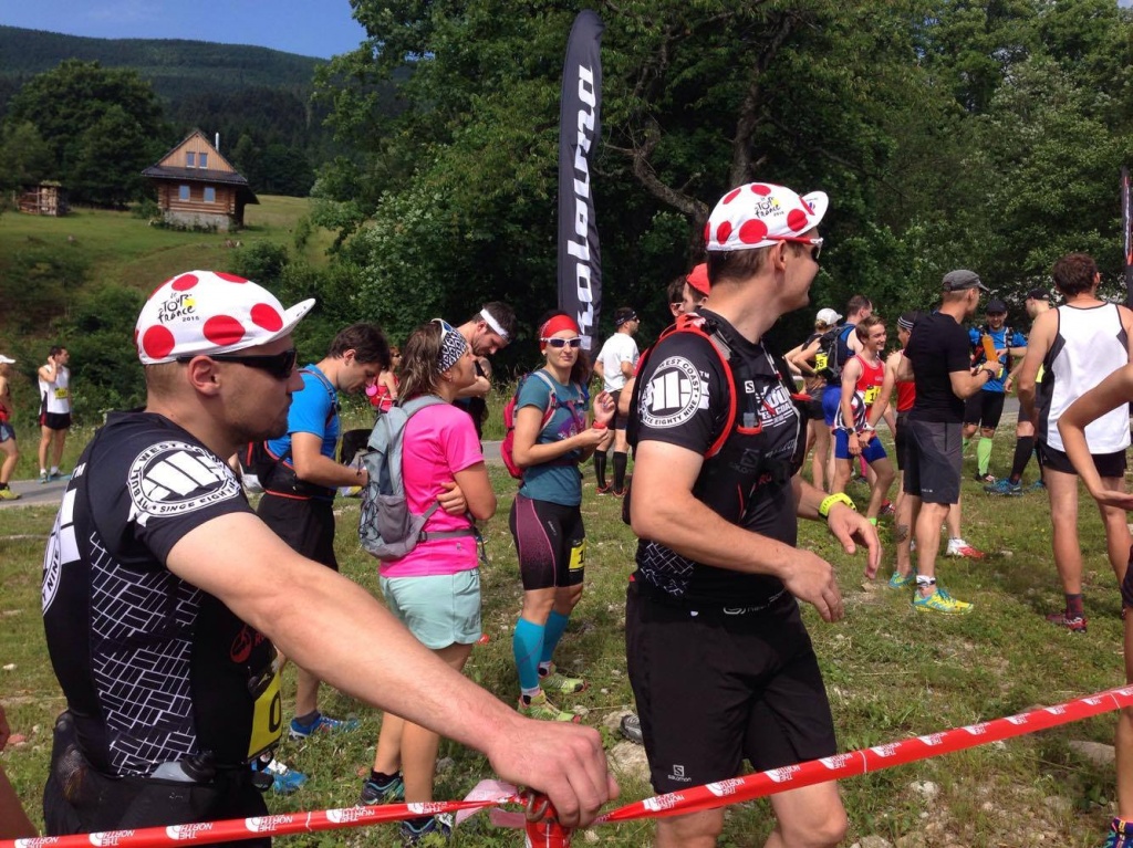 Po startu nás čekala asfaltka a celkem krátká, ale prudká (prej černá) sjezdovka. Vykašlal jsem se na nějaký velký rozcvičení a na sjezdovce jsem začal trpět. Lýtka zažívaly středověk. Na cestě nad sjezdovkou si matně vzpomínám, co mě čeká dál. Dobíhá mě borec a říká, že se mě bude držet, protože ví, že tu trasu znám. Předstírám vědomosti a valím směrem vpřed. Cestou mě pak oslovilo víc lidí. Jsem fakt rád, že tenhle blog někdo čte a mám radost, že můžu naživo pokecat s dalšíma bláznama, co se dobrovolně jezdí ničit na hory. Takže díky :)