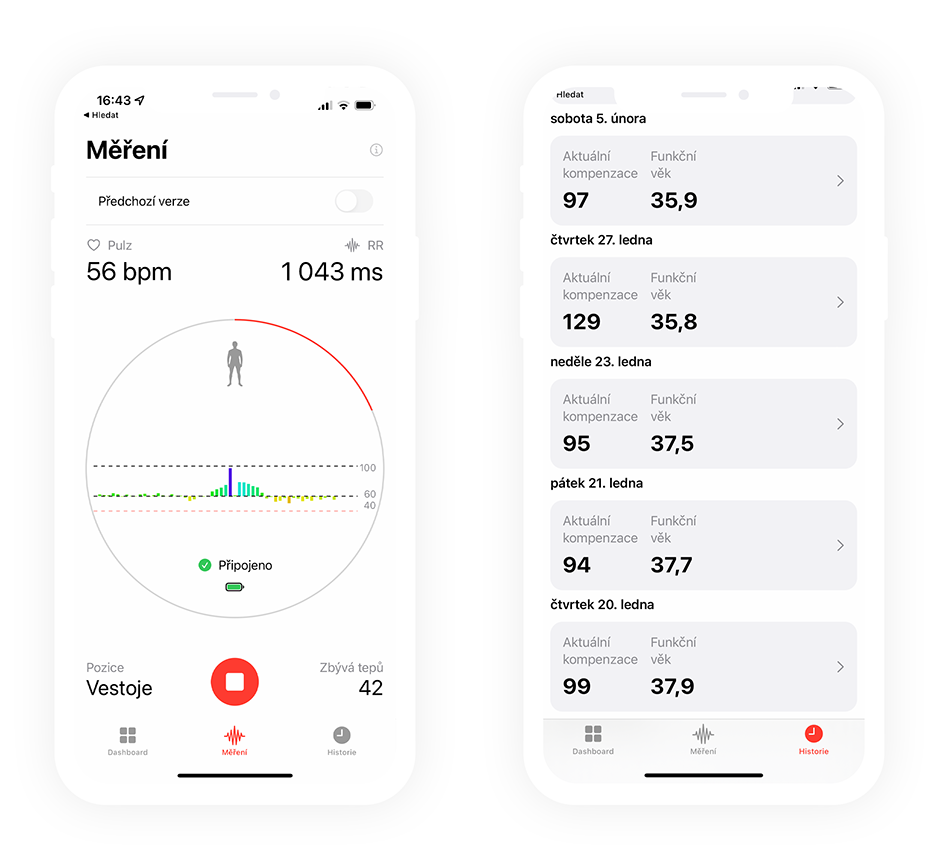 Obrázek vpravo – historie vašich měření. Po kliknutí se dostanete na web, kde uvidíte podrobnosti.